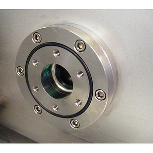 The optional external light source port upgrade provides both a motorized turning mirror and the flange for the input port so that users can couple external light sources (e.g. glowbar, Gunn diode, synchrotron) into the SPS-300. The motorized mirror switches inputs between the SPS-300 internal mercury lamp and external light source. Additional optics and chambers may be required to focus the external light source into the SPS-300.