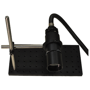 This accessory is a base and post assembly designed to work with 2" diameter optical assemblies. The PM90 allows a 2" optical assembly to be held vertically or horizontally and rotated through any angle, and is adjustable to any height above the included base plate from 0 to 12". The included 6x12" base plate can be secured to a standard optical table or left free standing. This accessory can be used with Sciencetech's AX Solar LightLine solar simulators to allow for horizontal or vertical operation (and at any angle) by holding to output optic at the end of the 4 foot light guide.
