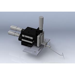 Sciencetech's (SCP-MP-G) is a micropositioning probe station with a magnetic base and a gold-plated spring probe. It utilizes micrometer heads for accurate repeatable adjustment. 0.5” is the magnitude of fine adjustment for this probe.