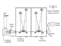 The standard SciVidi system includes two spectral dispersion systems with integrated diode array detectors for measuring spectral irradiance from 300-1050nm. The SciVidi is calibrated for spectral irradiance with a Deuterium and calibrated quartz tungsten halogen lamp. The spectroradiometer can measure spectral irradiance in time intervals as short as 100 us and can be synchronized with a TTL pulse. A cosine corrected optical head is connected to the spectroradiometer by a 2m fiber optic.